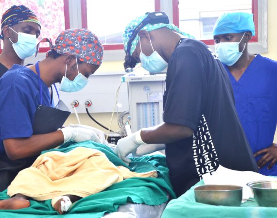 Surgeons doing pediatric surgery at St. Kizito Hospital, Matany, Napak district on Monday. Credit: Delux Emmy Alomu…