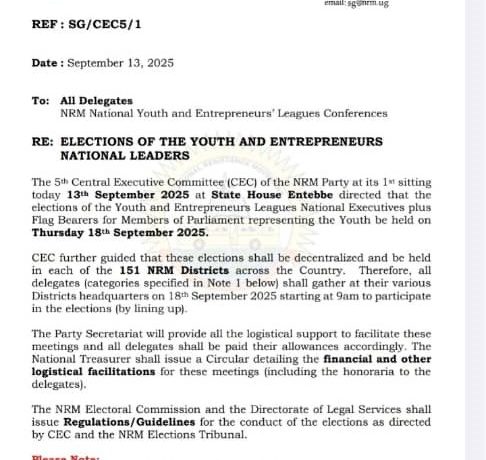 By Alexander Mackey Okori The Central Executive Committee (CEC) of the National Resistance Movement (NRM) has official set Thursday, September 18 2025, as the election day for the National Executives of the Youth and Entrepreneurs Leagues and flag bearers for Members of…